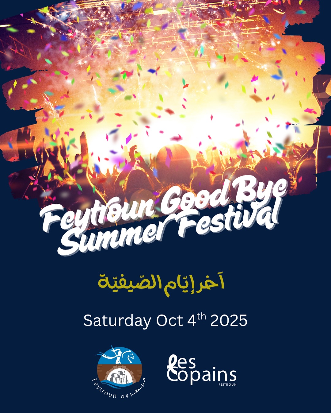 تنظّم بلدية فيطرون بالتعاون مع مختار البلدة ونادي lescopains lb مهرجان “Goodbye Summer Festival”، وذلك يوم السبت 4 تشرين الأوّل 2025